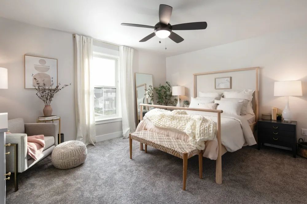 Our 2021 Parade Home features our Bridger floor plan with an optional family room separating the primary bedroom from the kids’ rooms, as well as an attached 2-car garage. It’s a wonderful plan for a young family with small children. All three bedrooms are upstairs, easing the burden on parents with kids who wake up in the night. (I feel your pain. Hang in there, parents. You’re doing great.)