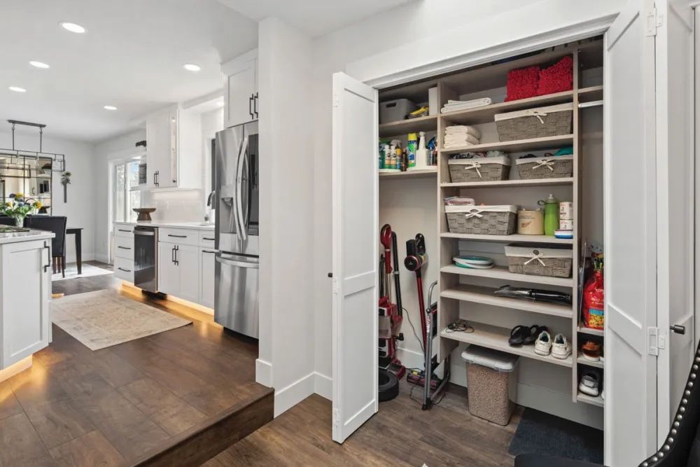 The kitchen’s transformation has made the most impact in the home, with its fresh and crisp white walls and tile. “It feels bigger,” says Mary Jo, who loved watching the renovation take shape. Their goal was to make it as open and fresh as they could. Mission Accomplished!
