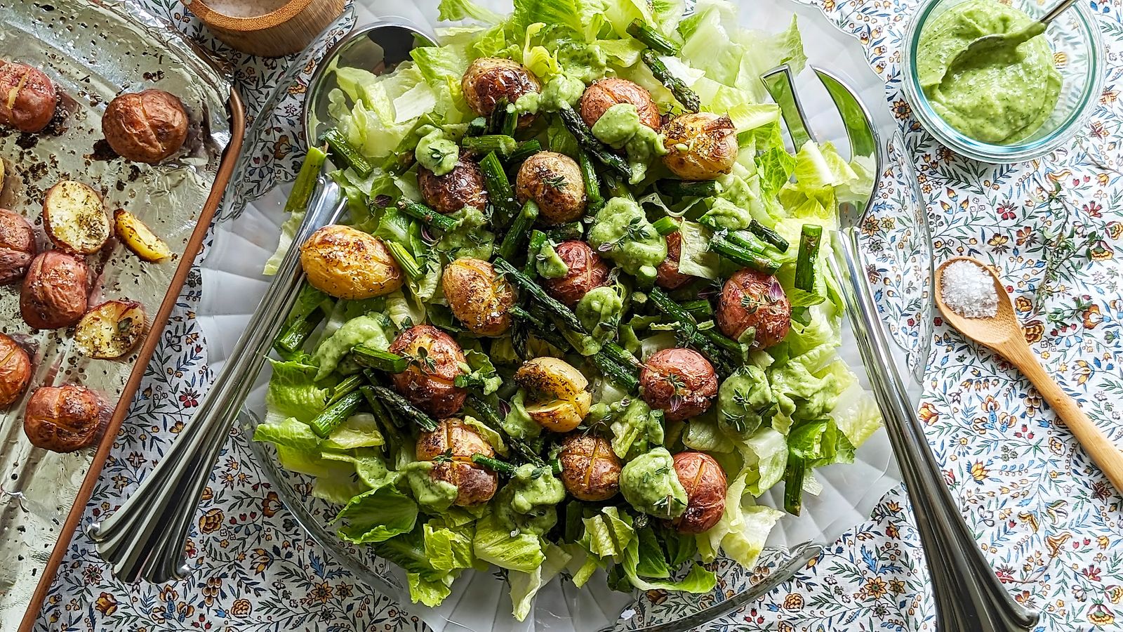 Roasted Fingerling Potatoes, Asparagus, and Avocado Salad