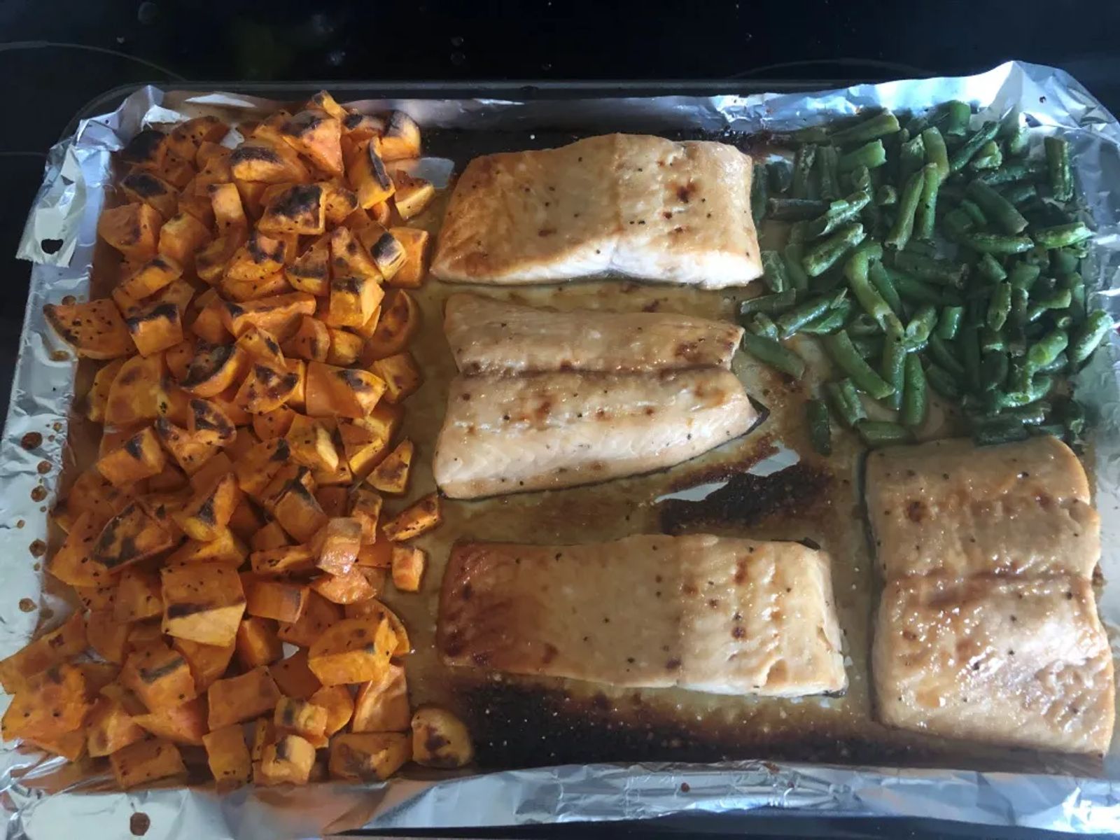 Sheet Pan Meal: Maple Glazed Salmon with Sweet Potato and Green Beans