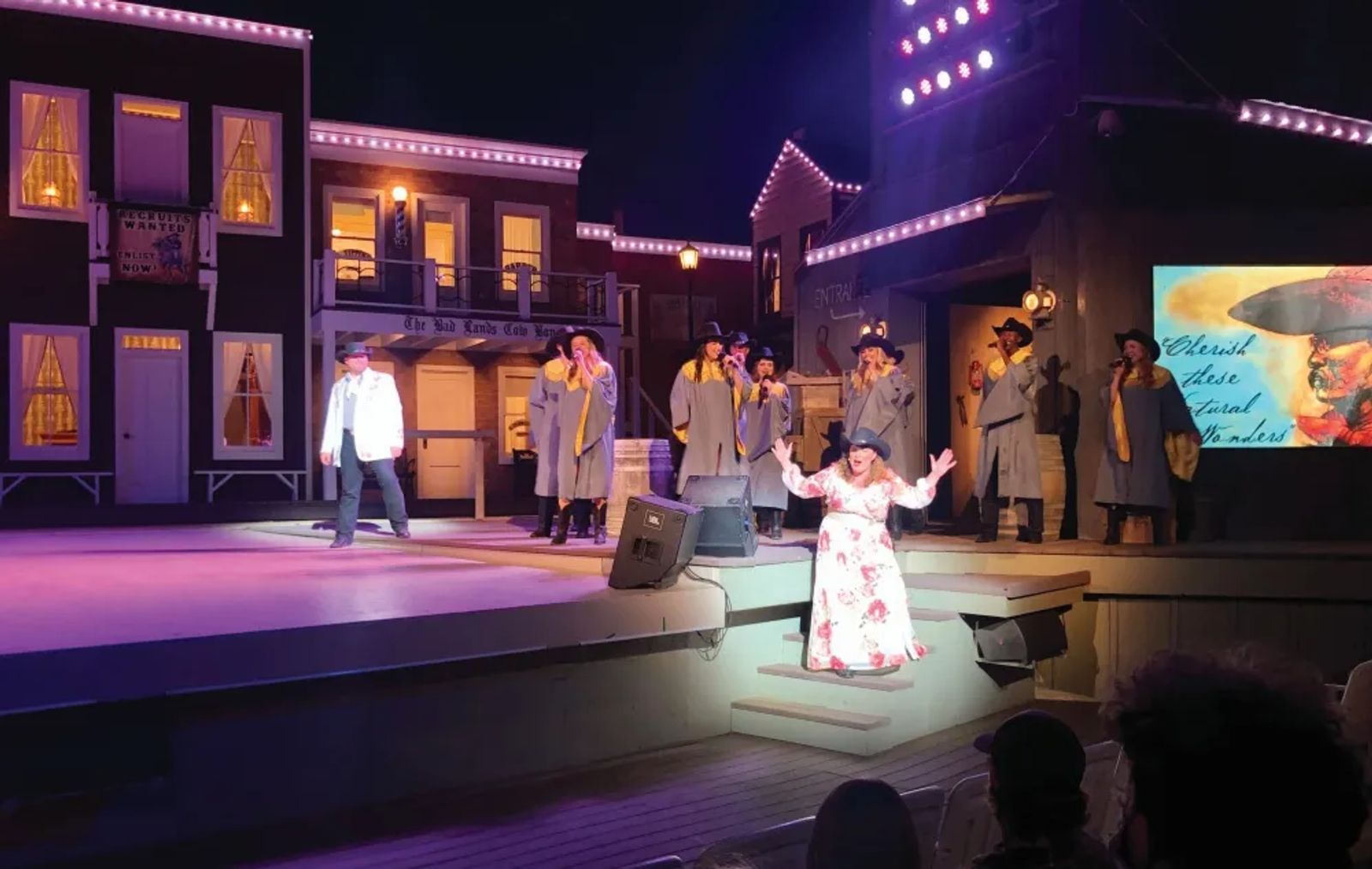 Advertised as dinner with a view, the Pitchfork Steak Fondue is a meal worth the money. Located in the same setting as the musical, the sweeping views of the badlands offer a backdrop to this unique dining experience. The chefs skewer the steak with a pitchfork, plunge it into a fondue barrel and serve it up hot, fresh, and seasoned to perfection. Hit the buffet line to pair it with all of your favorite fixin's. Savor each bite as the sun slowly fades and the anticipation of live entertainment builds. It's just about time for the evening's main event.