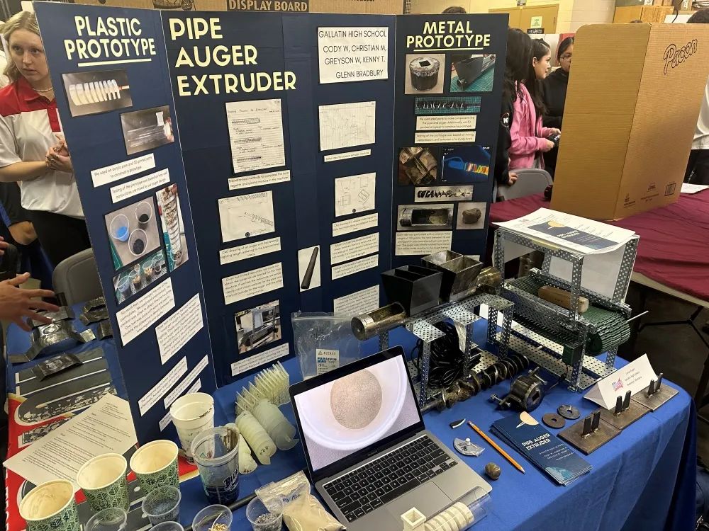 I next spoke with several groups from Bozeman and Gallatin High Schools, one using virtual reality to simulate what it would be like to bump into Bennu (an asteroid) and minimize the expanding dust cloud that would result. The second group created a pipe auger extruder to build bricks in space. This group not only built a prototype of their auger system, but also tested a variety of different particulates that could be used to make effective bricks in space.