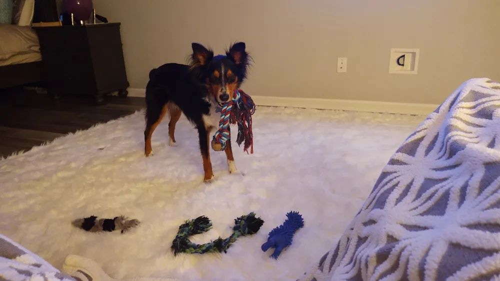 I also love to play with my toys. My mom says not every dog plays with toys like I do, but gosh I just don’t know why they wouldn’t! Playing toys with my mom is the best. If she doesn’t play with the toy I’ve brought to her I go back to my toy box and select a different toy to drop at her feet. I’ll keep doing this till she finds one she likes. Sometimes she acts like she doesn’t want to play, but come on, who doesn’t like to play?