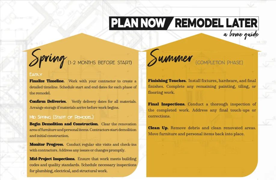 Planning a spring remodel in the fall might seem early, but it's actually ideal. The fall offers a crucial window to plan, secure contractors, and make decisions without the pressure of an imminent deadline. Starting now ensures an organized, stress-free remodel ready to begin in spring, allowing time to address challenges and refine your vision for a successful renovation.
