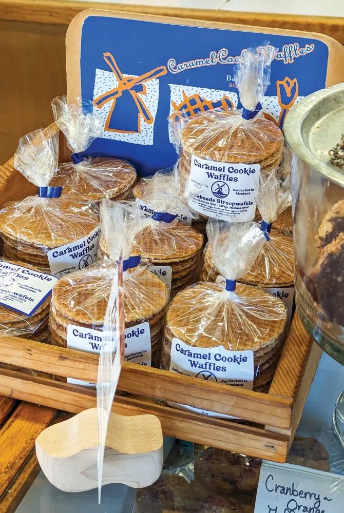 The stroopwafel is one of the most popular cookies in the Netherlands – one that was a staple of Jan’s childhood and has now become a staple in Montana. The sweet waffle cookies are sold all across the state in locally owned, mom-and-pop shops just like Caramel Cookie Waffles.