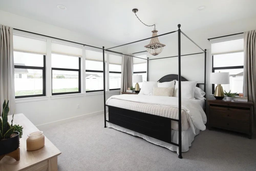 The main bedroom is filled with several windows for a bright and airy feeling.