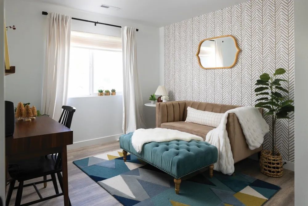 While wallpaper has gone through periods of popularity, it’s evolved immensely and is very much in the moment right now. It offers a unique aesthetic appeal that paint cannot provide, and Wells Built capitalized on this feature in the home. Sprinkled throughout, you’ll find several accent walls adorned with wallpaper, delivering subtle pops of personality and sophistication.