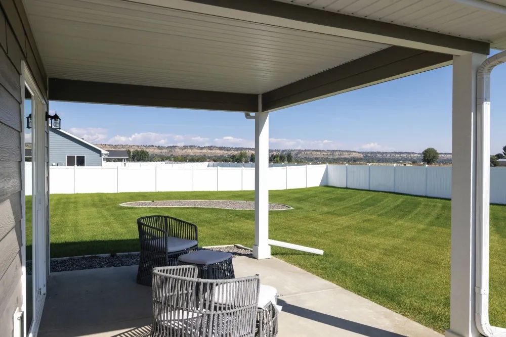 The home’s interior floor plan may be predetermined, but the exterior, on the other hand, is a wide-open, blank canvas. The covered patio is barbecue-ready, and the fully fenced, oversized backyard is just waiting for a homeowner’s touch. As the weather warms up, the ample green space provides plenty of room to garden, play, entertain, and relax outdoors.