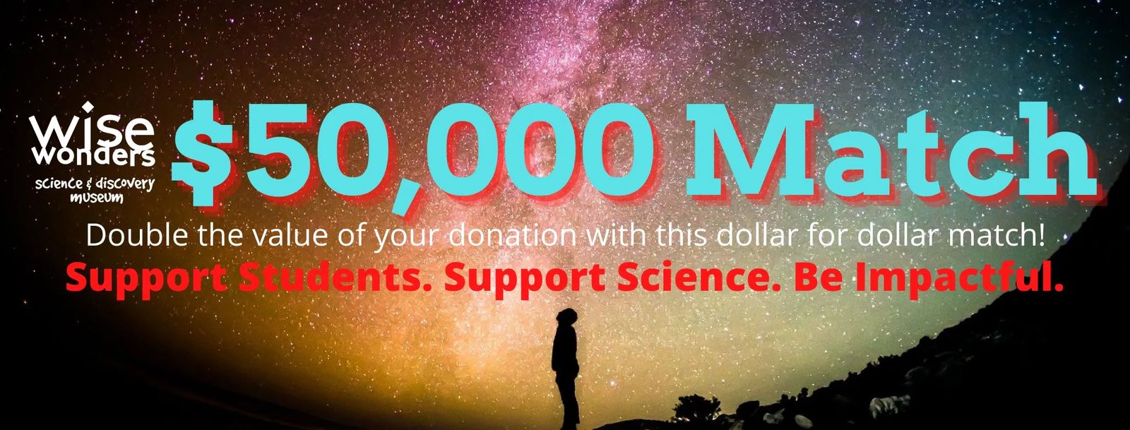 While the staff at Wise Wonders Science & Discovery Museum have been busily working during the pandemic-dictated closure, striving to implement the vision for their larger space, the Museum announced an exciting gift (and giving opportunity) that will serve Wise Wonder's Vision Campaign. The AJ Blain Foundation has agreed to make a $50,000 gift to pose as a matching challenge for the campaign. Any gift made in the next two months will be matched 100% by the Foundation, up to a total of $50,000.